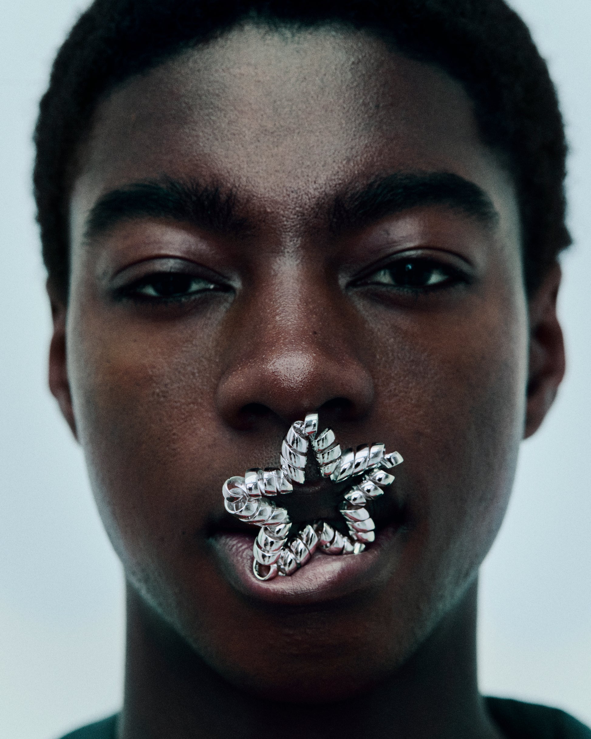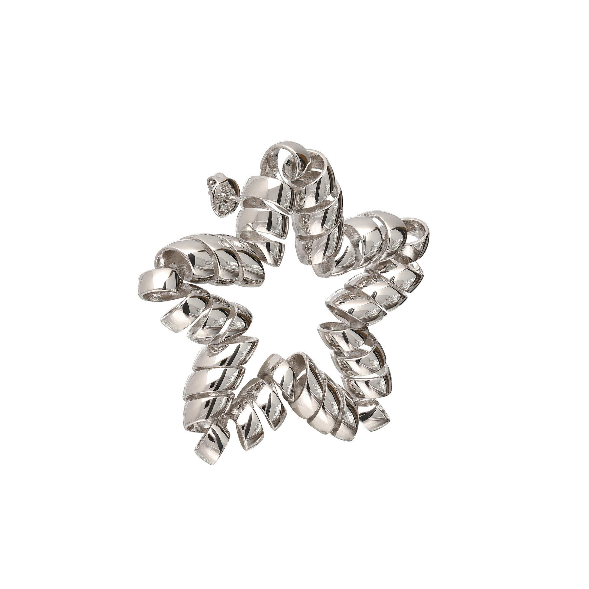 Single stud earring with a star-shaped spring design, made of rhodium-plated brass.