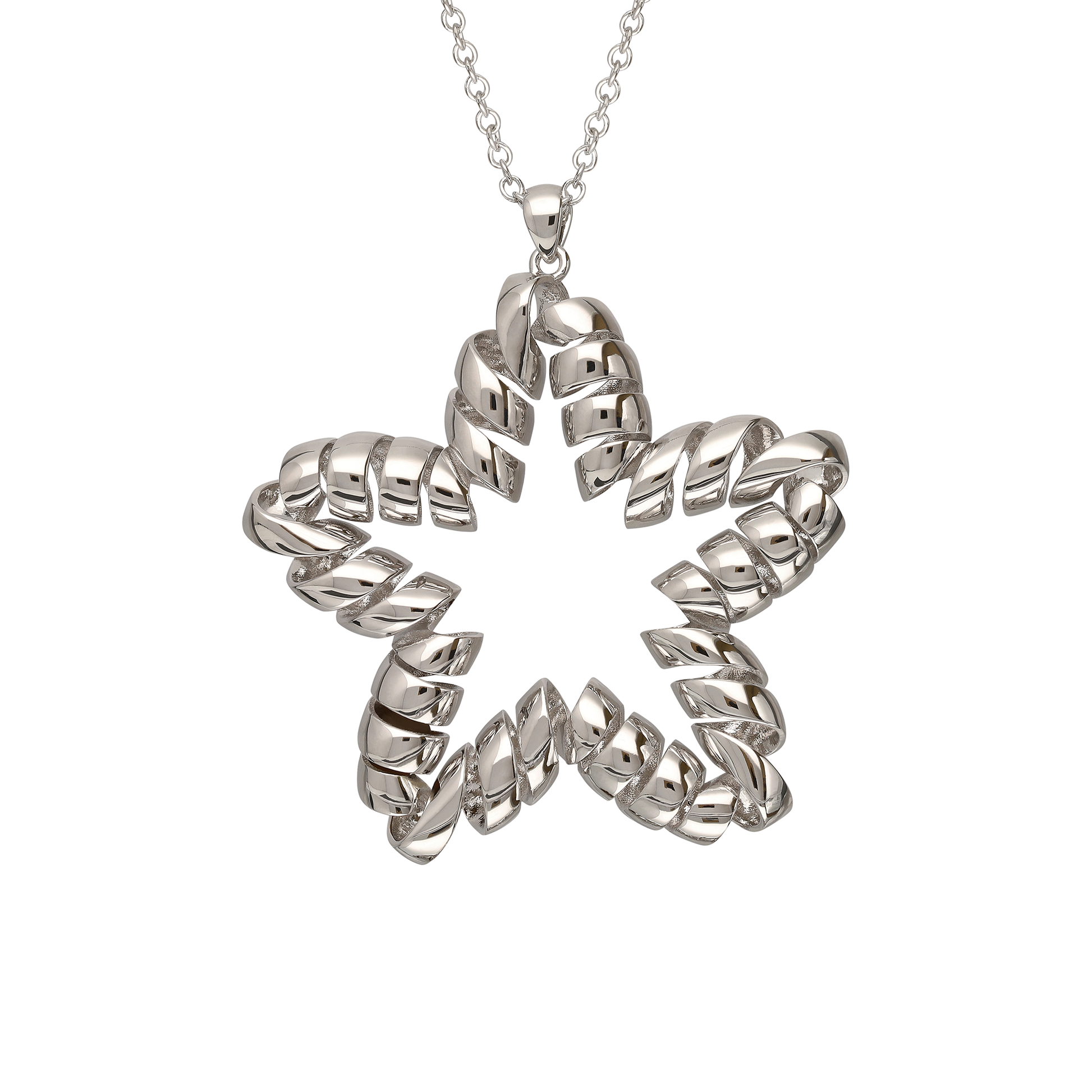 Necklace with a star-shaped spring pendant, made of rhodium-plated brass.