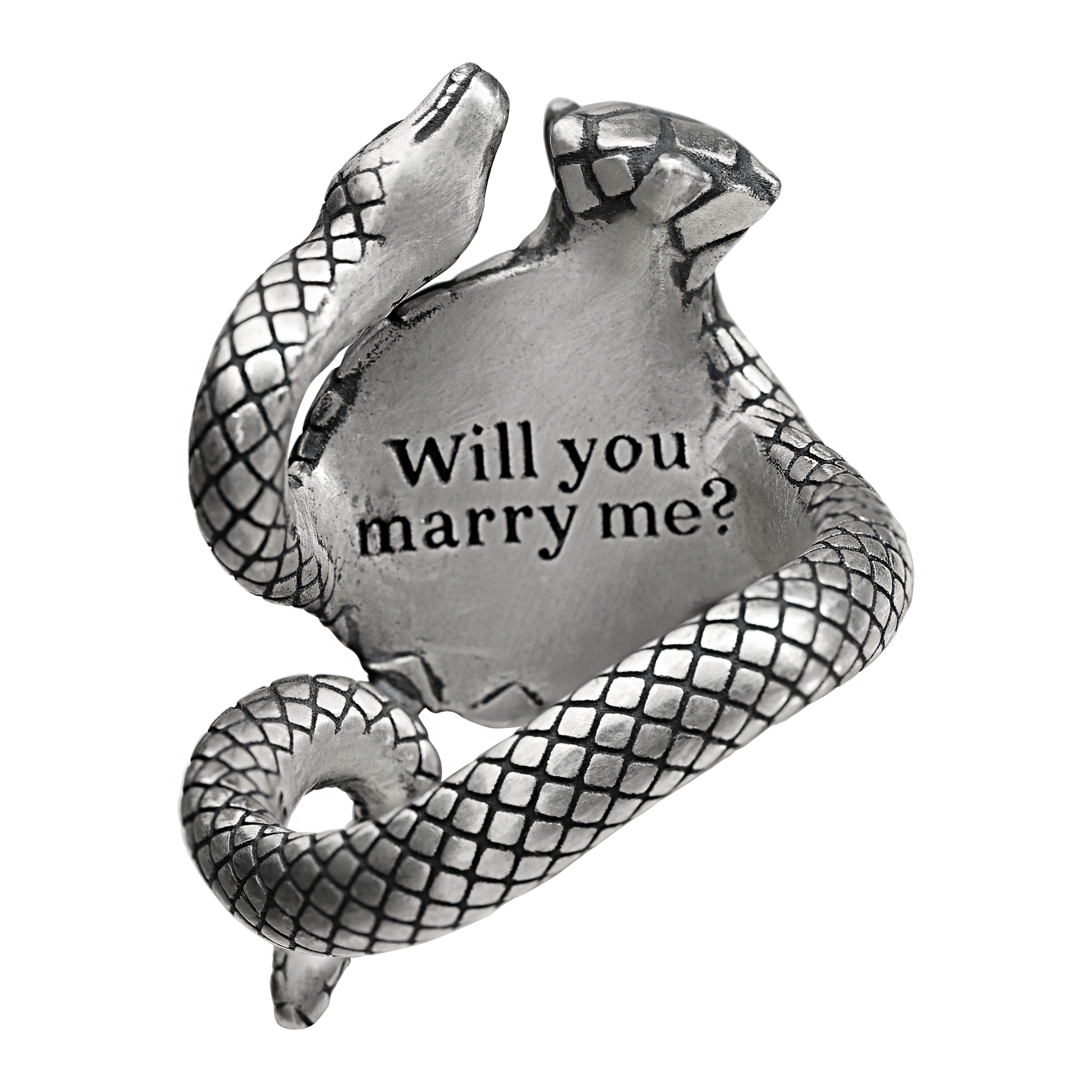 Explore our serpent-inspired ring, a symbol of sophistication, where a gracefully coiled snake adorns a diamond-encrusted wedding ring.